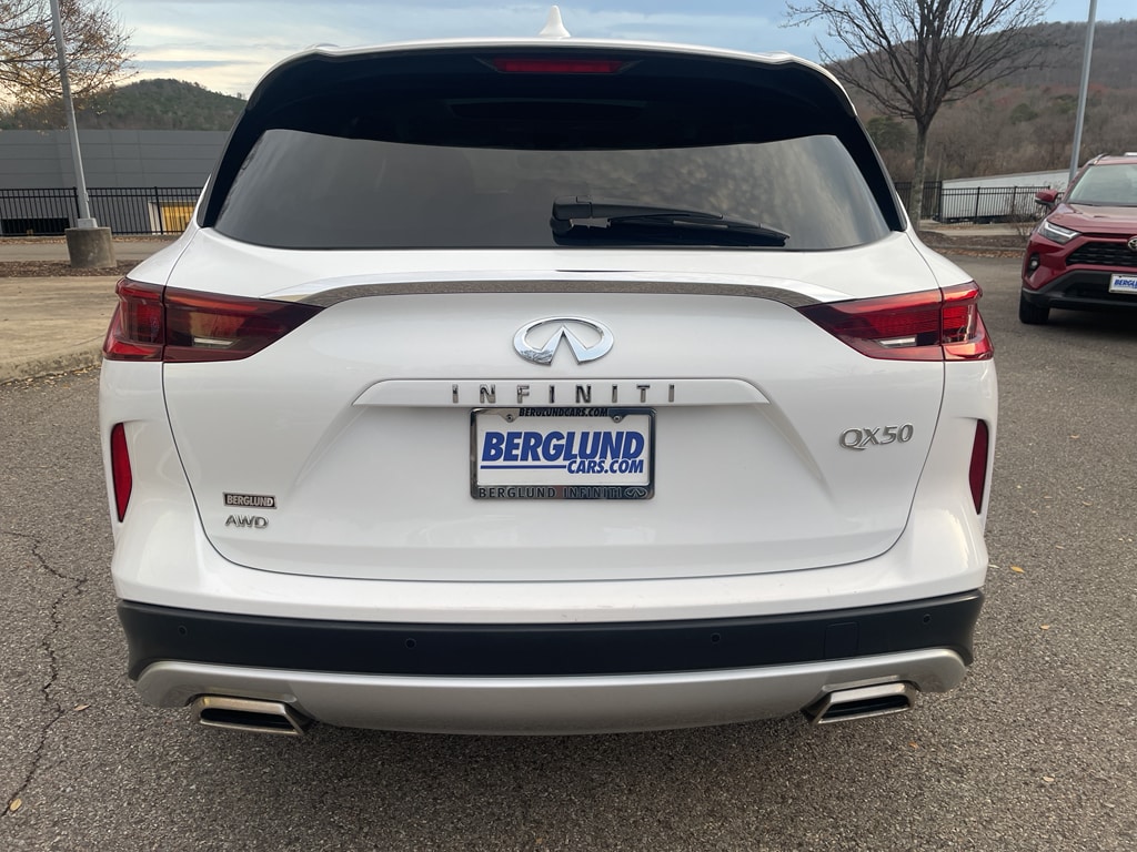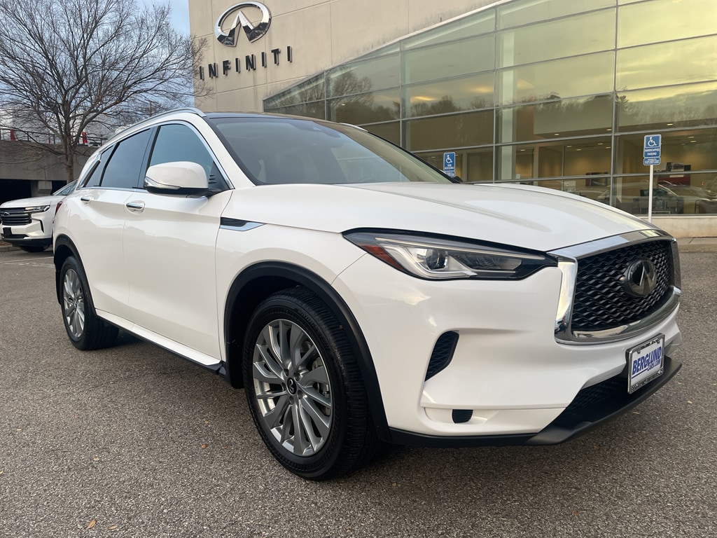 See what's behind you with the back up camera on this vehicle. Bluetooth technology is built into it, keeping your hands on the steering wheel and your focus on the road. This vehicle offers Apple CarPlay for seamless connectivity. This mid-size suv has a clean CARFAX vehicle history report. The vehicle's Forward Collision Warning feature alerts drivers to potential front-end collisions. The rear parking assist technology on it will put you at ease when reversing. The system alerts you as you get closer to an obstruction. Start this mid-size suv from inside with remote start. This unit keeps you comfortable with Auto Climate. Good News! This certified CARFAX 1-owner vehicle has only had one owner before you. This model comes equipped with Android Auto for seamless smartphone integration on the road. This model features a high end BOSE stereo system. The leather seats in this 2023 INFINITI QX50 are a must for buyers looking for comfort, durability, and style.