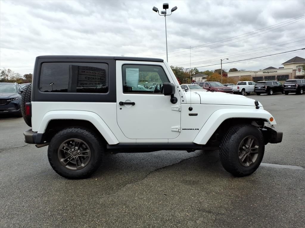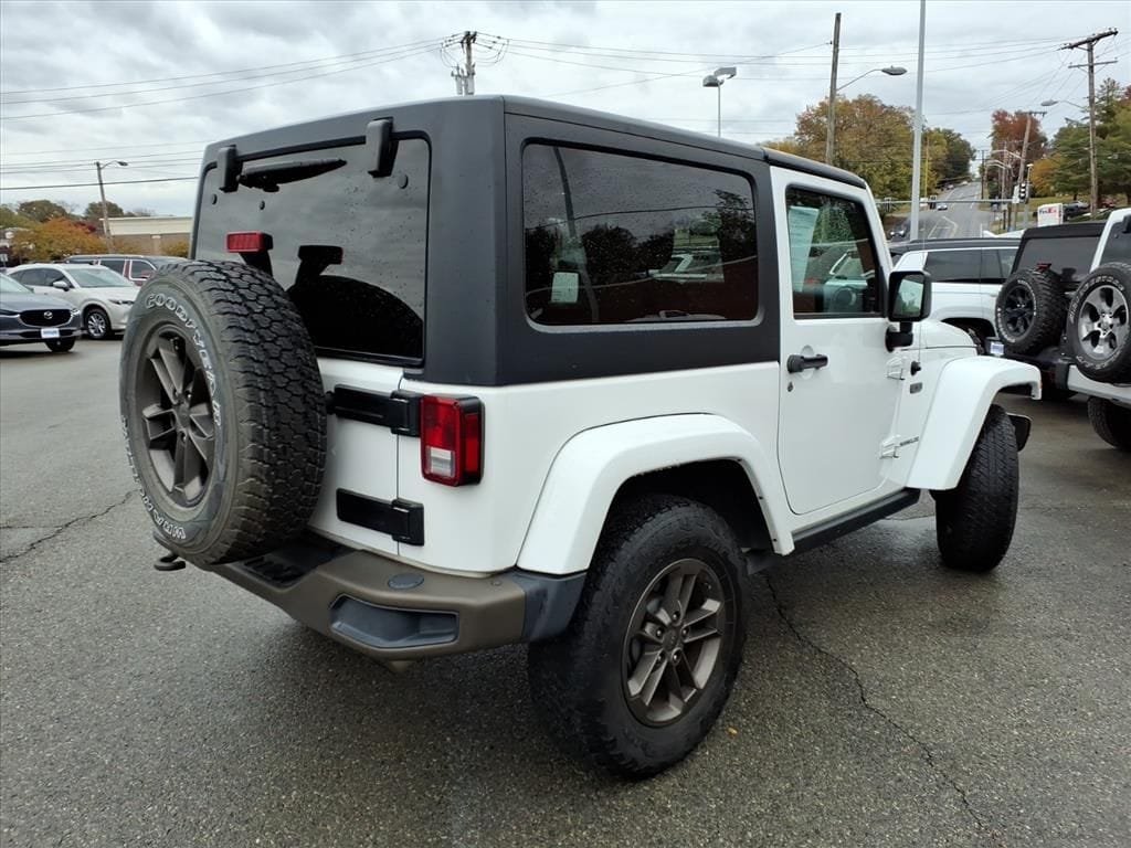 Experience rugged capability and classic Jeep heritage with this 2016 Jeep Wrangler 75th Anniversary Edition, now available in Roanoke, VA. Powered by a proven 3.6L V6 gasoline engine and equipped with 4WD, this Jeep Wrangler delivers confident off-road performance and comfortable highway driving. Distinctive anniversary styling, premium leather seats, and thoughtful creature comforts make this Jeep Wrangler both functional and refined. This model includes Hands-Free Bluetooth for seamless phone and audio connectivity, an integrated Navigation system to guide your next adventure, and a leather-trimmed interior that elevates daily commutes and weekend escapes. The vehicle comes with a CARFAX Clean Report, providing documented history for added peace of mind. Practical features and durable construction ensure long-lasting value whether you're tackling trails or navigating city streets. This Jeep Wrangler is competitively priced and represents the best price in the market for this combination of edition, features, and condition â" exceptional value for buyers seeking capability and comfort. Located in Roanoke, VA, this 75th Anniversary Jeep Wrangler is ready for test drives and immediate delivery. Contact us to schedule a viewing, learn more about financing options, or request further vehicle history details. Don't miss the chance to own a distinctive, well-equipped Jeep Wrangler with proven performance and a clean CARFAX.